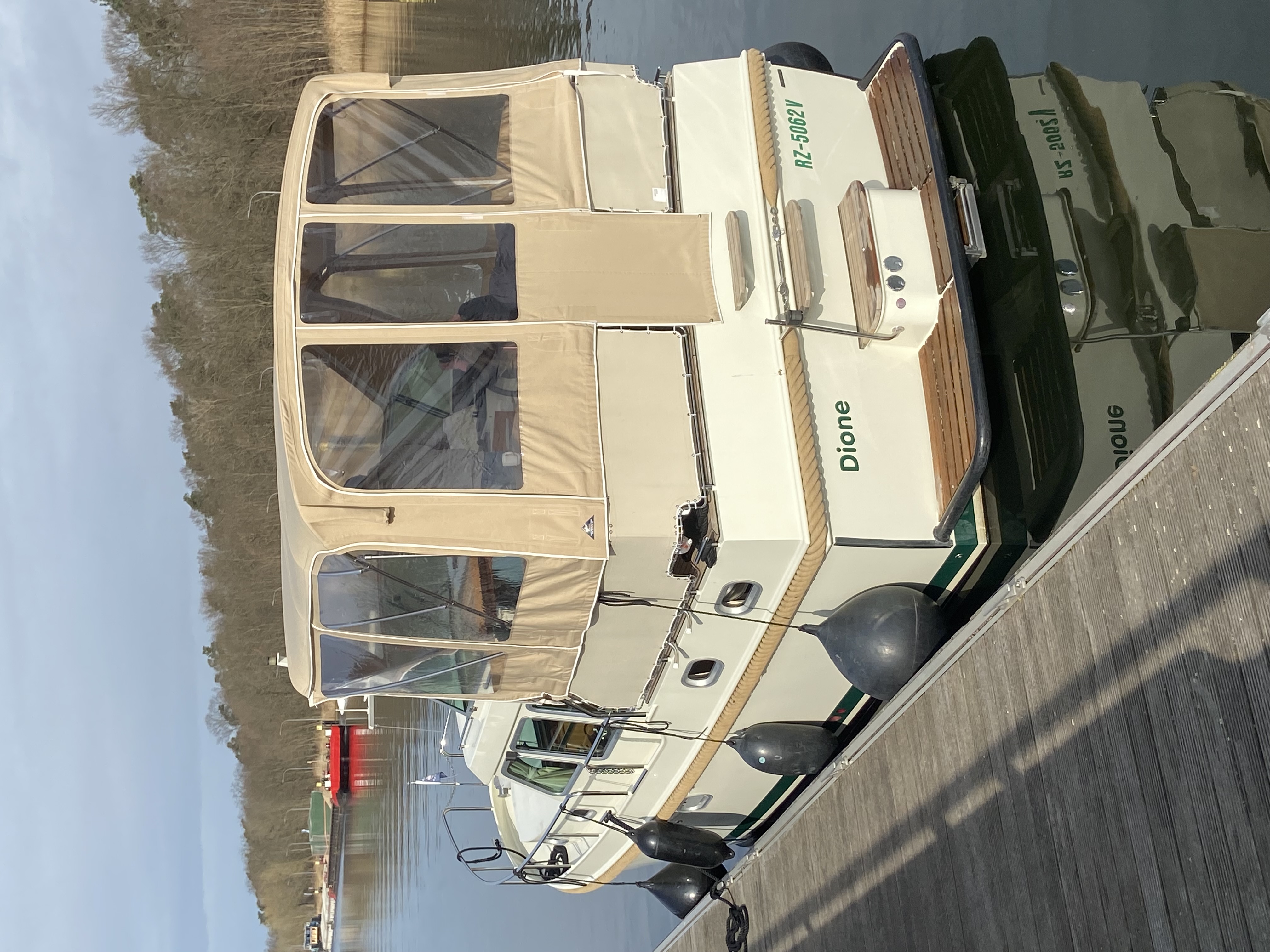 Das Schiff ist innen und außen komplett überarbeitet, es besitzt eine hochwertige Innenausstattung mit gehobenem Flair zum Wohlfühlen. Außen besticht die „Dione“ durch ein breites Gangbord und eine Rundum-Reling. Die hochwertige und durchdachte Ausstattung, macht die „Dione“ zur idealen Motoryacht für 2 Personen, oder Familien mit bis zu 4 Personen.