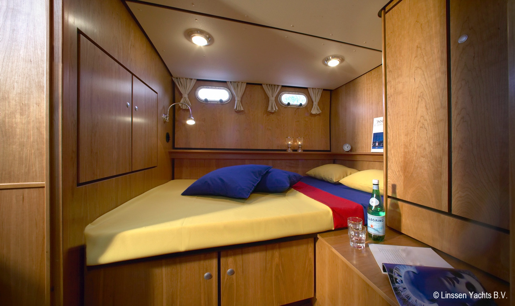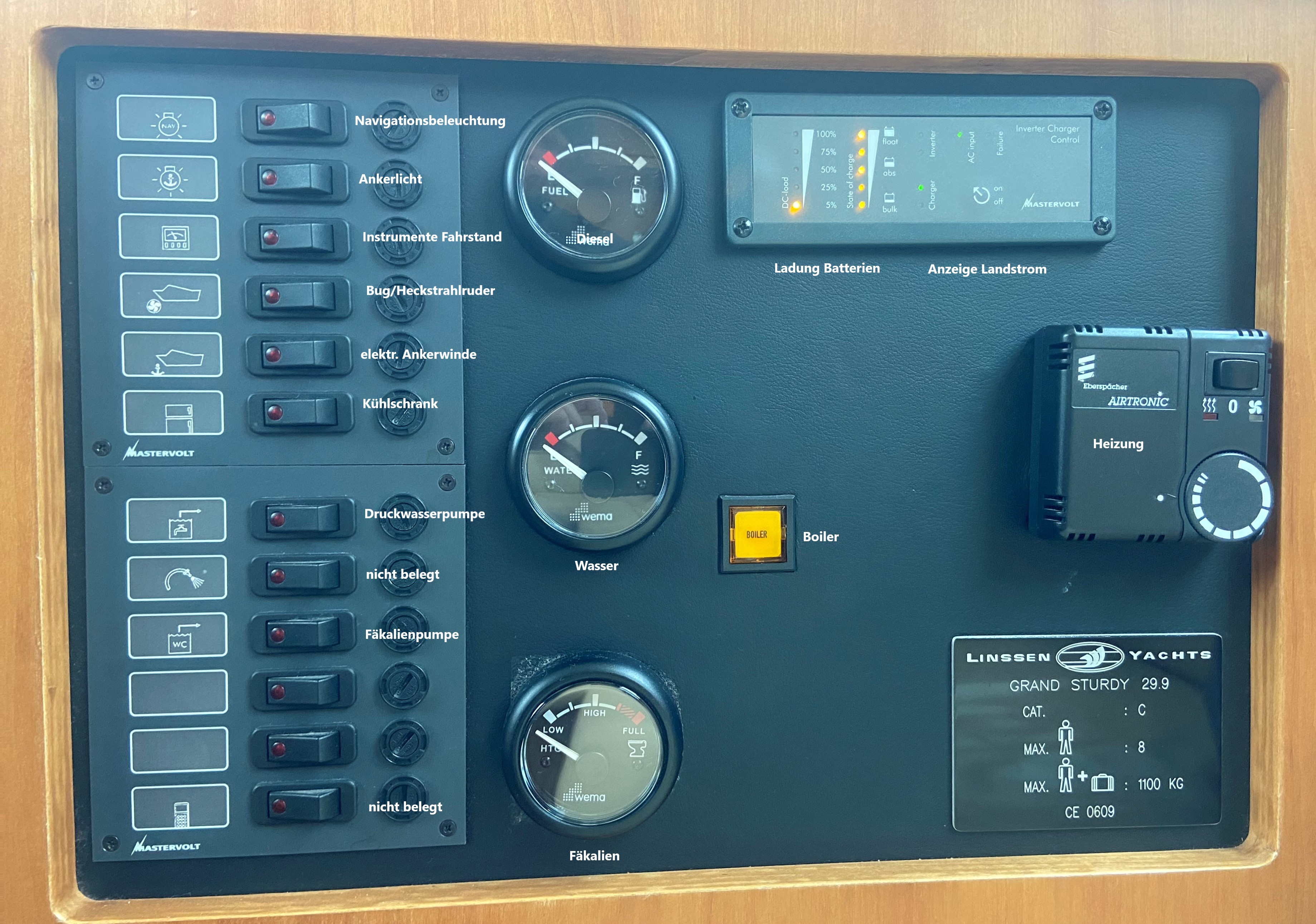 Selbstverständlich ist die Linssen mit Bug- und Heckstrahlern ausgerüstet. Navigiert wird mit dem Raymarine 60+ Tridata mit Log, Lot und Strecke, ST60+ Ruderlagenanzeiger und Kartenplotter.